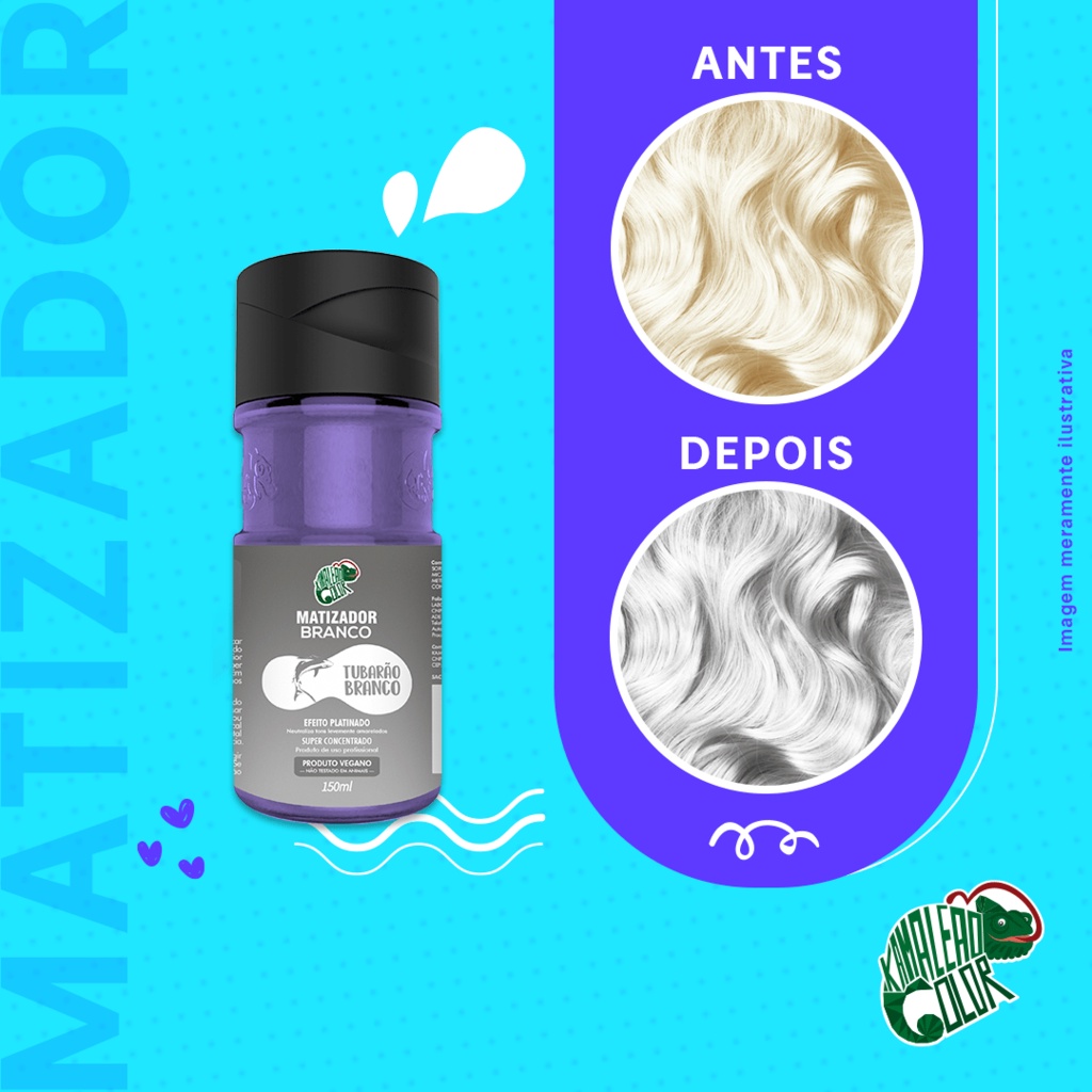 TUBARÃO BRANCO Tónico es un producto concentrado para uso profesional. Fue desarrollado para ser utilizado con el Diluyente Arco Íris en proporción 1:5, es decir, 1 cucharada de Tinizador por 5 cucharadas de Diluidor. Tambien puede usarse una mascara capilar blanca de su preferencia.