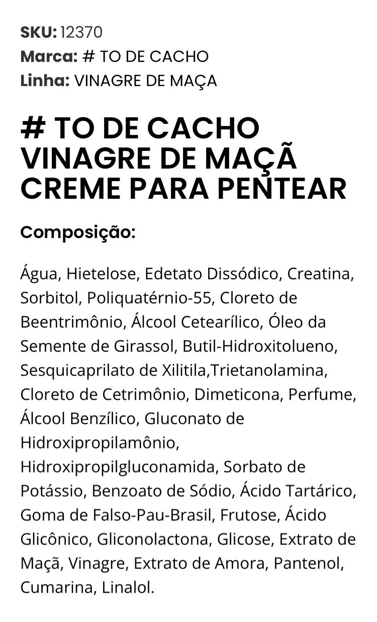 ➡️Modo de empleo: Con el cabello limpio y húmedo, aplicar Salon Line To De Cacho Shaving Cream Apple Vinegar, mechón a mechón, uniformemente desde el largo hasta las puntas, desenredando con un peine de dientes anchos. Luego, aplasta los rizos, comenzando el movimiento desde las puntas hasta la raíz. Repite este movimiento tantas veces como sea necesario para que se formen los rizos. La cantidad a aplicar dependerá del largo y volumen de los hilos. No enjuague.